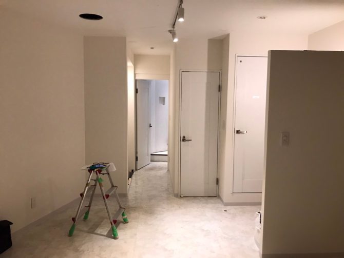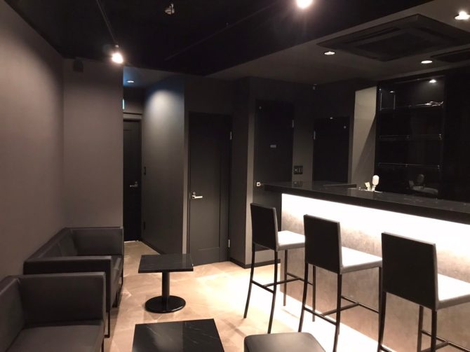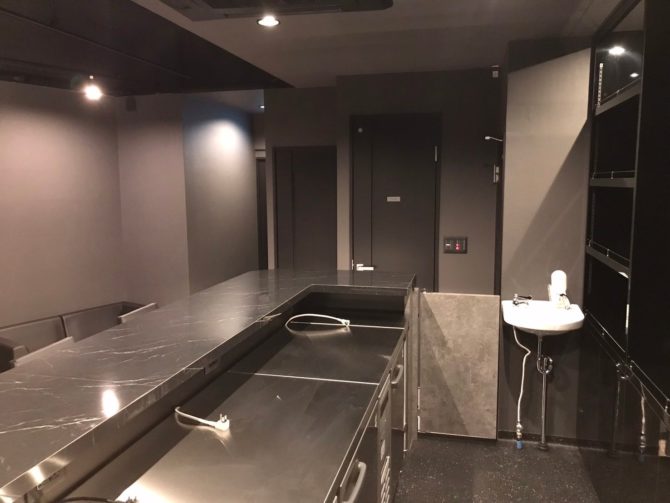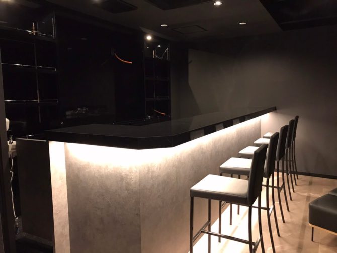 渋谷区道玄坂にて予約制のBAR内装工事を行いました。天井が低かった為、客席のみ既存の天井を撤去し黒塗装を施し圧迫感を取り除きました。お客様は全体的にダークトーンを希望され家具まで提案させていただきました。
